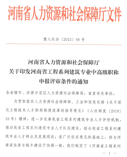 關(guān)于印發(fā)河南省工程系列建筑專業(yè)中高級職稱申報評審條件的通知2021/08/24 13:34