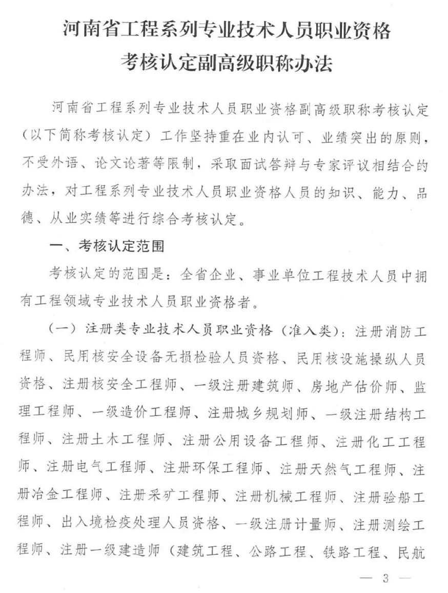 河南省工程系列專業(yè)技術人員職業(yè)資格考試認定副高級職稱辦法的通知2021/08/26 14:26