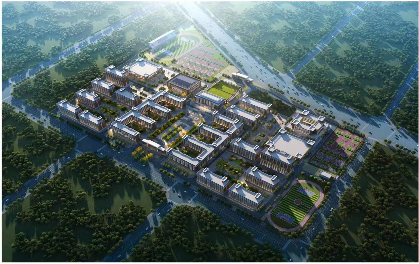 體育設(shè)施主要包含:1個400米跑道運(yùn)動場,1個200米跑道運(yùn)動場,18個籃球場,15個排球場,60個乒乓球場地,器械操場約4000平方米,室內(nèi)比賽場地3個,項(xiàng)目建成后可新增高中學(xué)位5000個,有效解決高中“大班額”問題,從而進(jìn)一步提升高中教育教學(xué)水平。